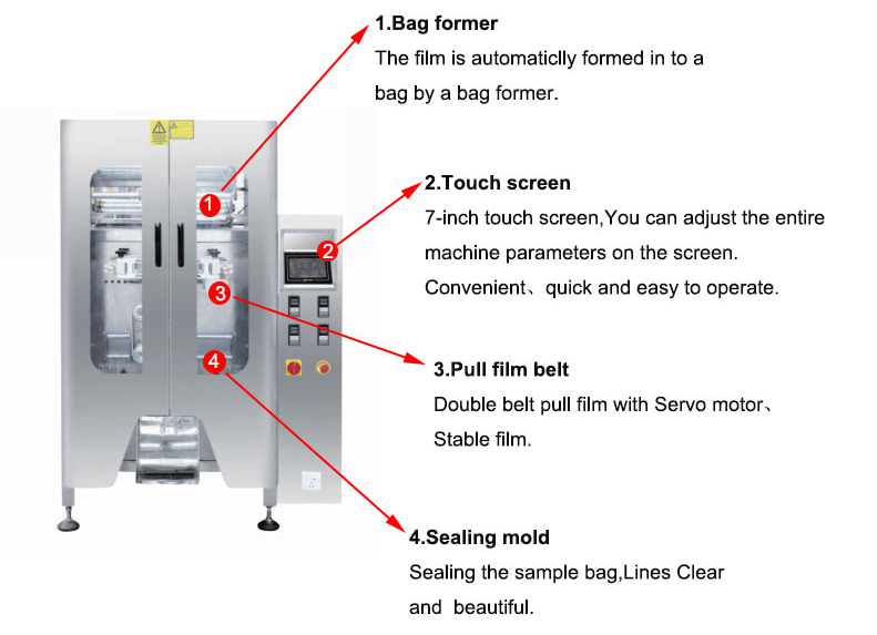 آلة تغليف الأكياس العمودية، MK-520T يمكنها تكوين أكياس رباعية اللحام بسمك 25 سم. ماكينة تغليف الأكياس العمودية هذه تعمل بالاشتراك مع ميزان متعدد الرؤوس، الميزان الخطي، أكواب التعبئة، ميزان الحلزوني ووحدة تعبئة السوائل لتكوين أنظمة التعبئة الآلية المختلفة. أنظمة التعبئة يمكنها القيام بالتعبئة الأوتوماتيكية للمواد الحبيبة، المسحوق، السائل، عجينة الفطائر السائلة وغيرها. علاوة على ذلك، الأكياس رباعية اللحام تعطي مظهر أكثر جاذبية من النوع العادي من الأكياس القائمة، حيث تعمل على إضافة قيمة للمنتجات.