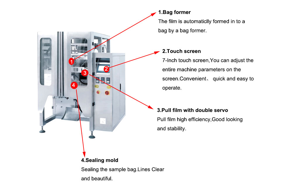 آلة تغليف الأكياس العمودية، MK-520K تعتمد نظام سحب الفيلم بمحرك السيرفو المزدوج للتقليل من سحب الفيلم، وهذا بدوره يحقق سرعة تعبئة تصل إلى 50 كيس لكل دقيقة. ماكينة التعليف العمودية هذه تتوافق مع ميزان متعدد الرؤوس، الميزان الخطي، ميزان الحلزوني ووحدة تعبئة السوائل لتكوين أنظمة التعبئة الرأسية المختلفة لمواد التعبئة بأشكال متنوعة.