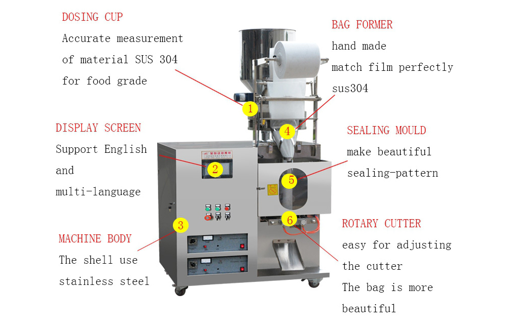 - سرعة التعبئة والتغليف: من 30 إلى 60 كيس لكل دقيقة