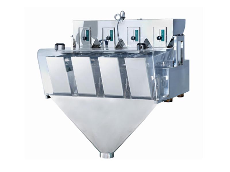 هذا الميزان الخطي مُجهز بأربع رؤوس للوزن المتزامن لأربع مواد مختلفة وكل قادوس ينميز بمطاق للوزن من 20 إلى 2000 جرام. باشتراكه مع ماكينة التعبئة والتغليف، فإن الميزان الخطي هذا يكون قابل لتعبئة المواد المخلوطة بأربع مكونات. في هذا الميزان الخطي من السهل تغيير المنتجات والوزن المستهدف. بسبب التقليب السريع، فإن الميزان الخطي رباعي الرؤوس هذا مناسب لتعبئة مخاليط الحبيبات المنتظمة بأوزان ومكونات مختلفة.