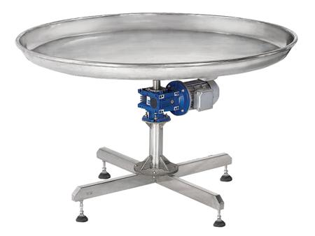 الطاولة الدوارة لاستقبال الاكياس الجاهزة صُنعت بالكامل من الفولاذ المقاوم للصدأ لتجمع الأغذية المكيسة النهائية، مثل رقائق البطاطس (شبس)، الفول السوداني، الحلوى، الفواكه المجففة والمنتجات الحبيبية والمربعة الأخرى لعمليات التعبئة والتغليف المتعاقبة. سرعة الدوران يمكن ضبطها وفقاً لمتطلبات التطبيق للعميل.